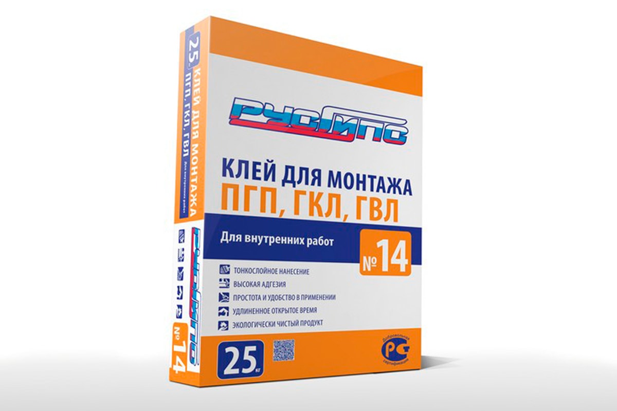При монтаже ГКЛ (ГВЛ) на основание с неровностями более 20 мм необходимо установить маяки при помощи полос из гипсокартонных листов шириной около 10 см. Приклеить полосы на клей РУСГИПС №14. Регулировать установку маяков для устранения перепадов с помощью уровня или отвеса. После полного высыхания клея к маякам приклеивается лист ГКЛ (ГВЛ). Раствор наносится зубчатым шпателем на лист полосами по периметру и в центре. Ряды листов укладывать со смещением вертикальных швов. Оставлять зазоры между листами 5-7 мм для заделки и шпаклевания, и не допускать, чтобы они были полыми для предотвращения образования трещин после их обработки.
